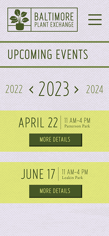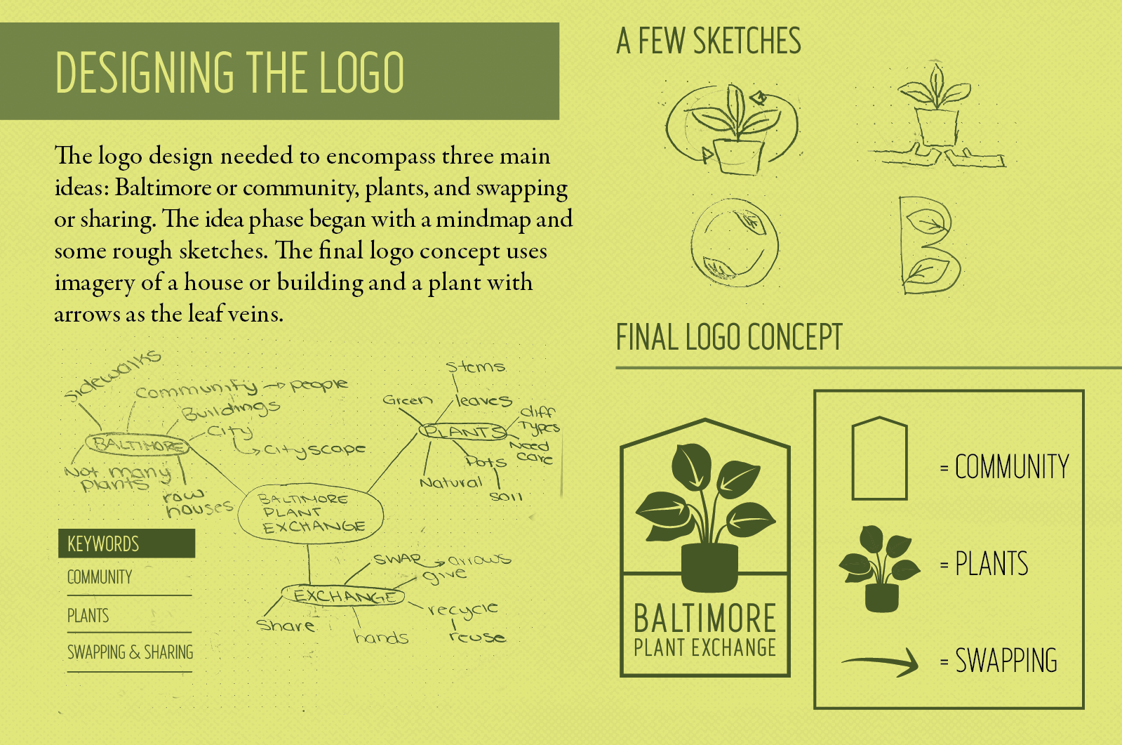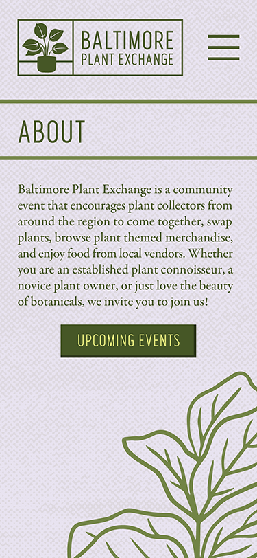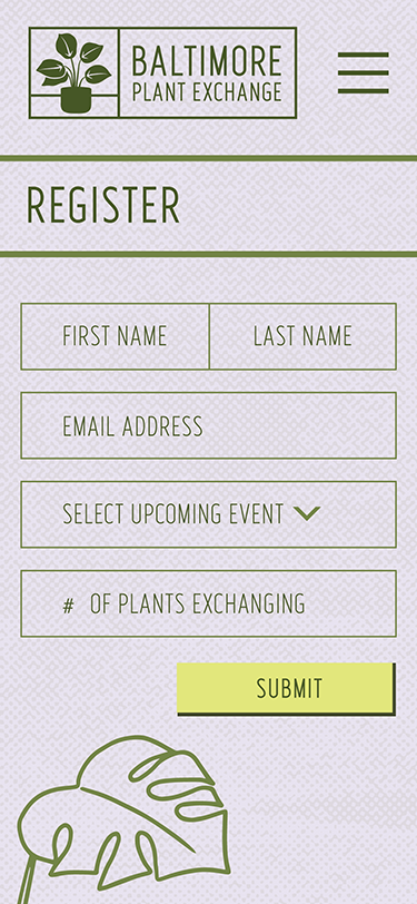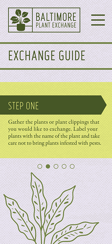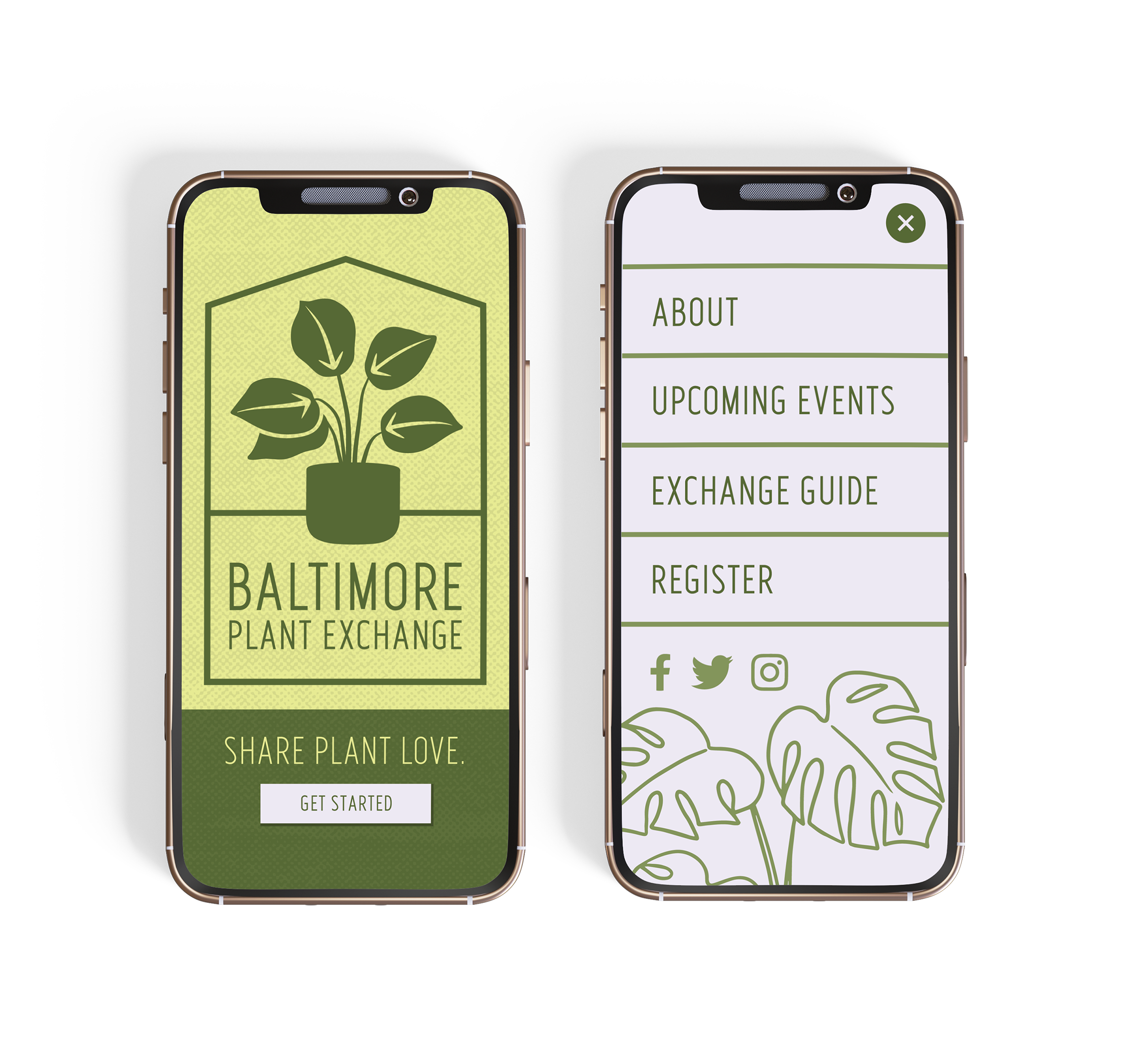 The aim of this project was to develop a concept and branding for a pop-up event. Baltimore Plant Exchange is an event for people who love and enjoy plants to come together as a community and exchange plants. The design elements include both a vertical and horizontal logo, hand-drawn brand assets, and an app for attendees to learn more about the event and register for the exchange.