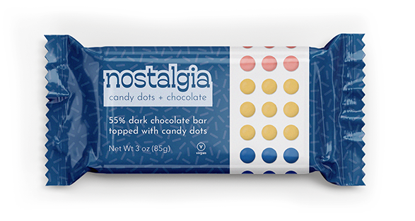 The goal of this project was to create a unique and memorable chocolate bar concept and package design. Nostalgia Chocolate combines chocolate with favorite childhood candies and targets adults that would like to reminisce about the past. The brand is intended to remind the audience of memories, nostalgia, and good times. The package is retro inspired and uses illustration to give insight into each bar’s flavor.